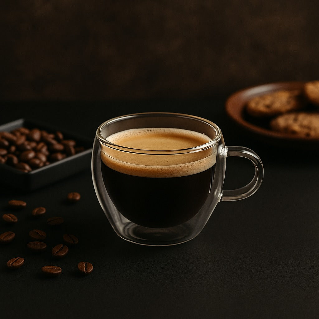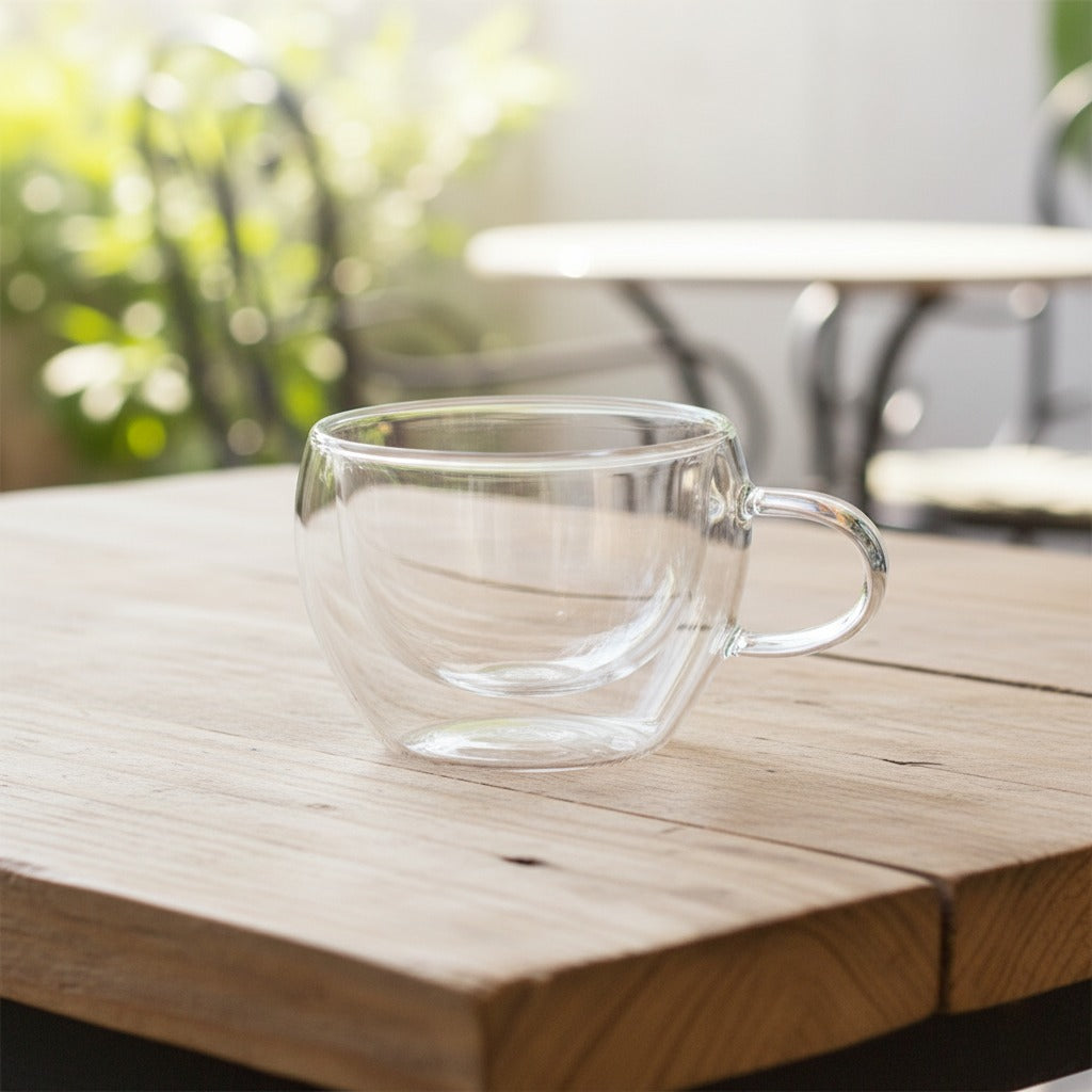 Transparente, minimalista e versátil, realça a cor e a cremosidade do café — perfeita para transformar sua rotina em um ritual mais elegante e prazeroso, seja no trabalho ou em casa.